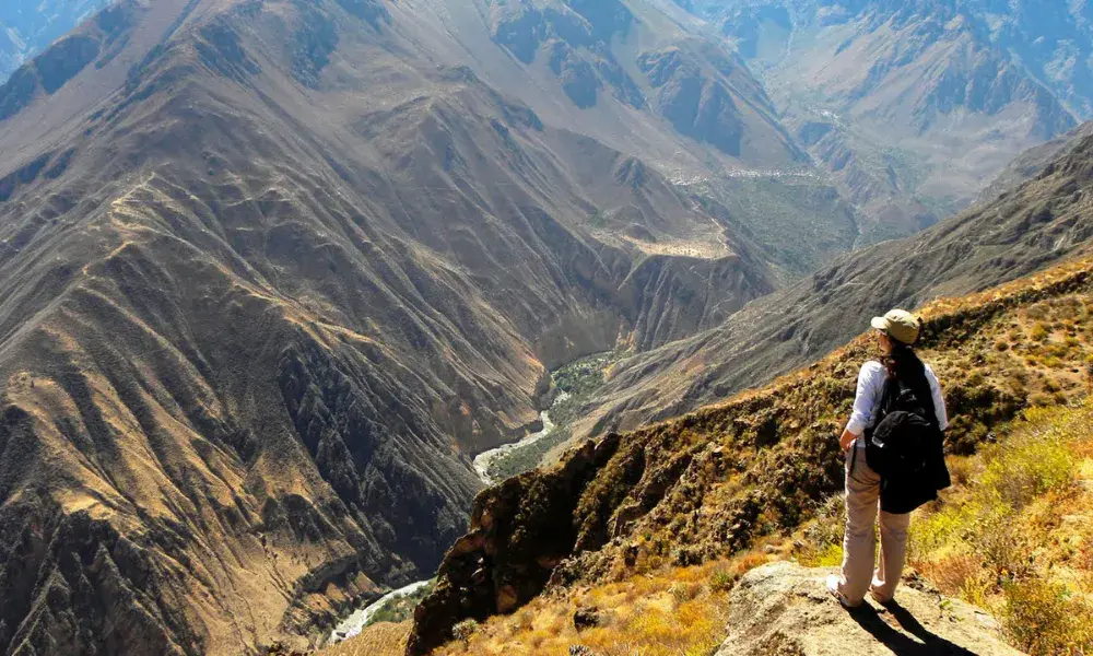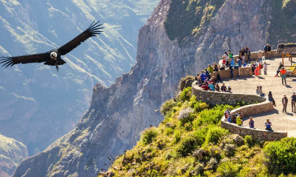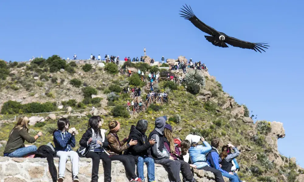 Nos dirigimos a la famosa Cruz del Cóndor, donde tendremos el tiempo suficiente para observar la profundidad del cañón, tomar fotos y apreciar el vuelo del cóndor.