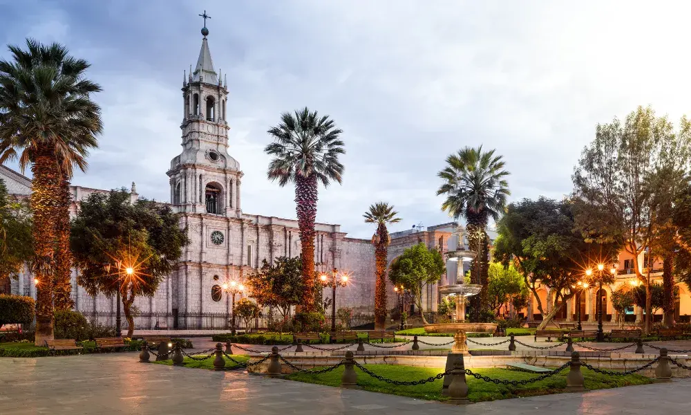 La “Ciudad Blanca”, llamada así por lo blanco de sus edificios construidos con sillar (ceniza volcánica petrificada), se caracteriza por tener una arquitectura prodigiosa, imponentes volcanes y una gran gastronomía. Uno de los principales atractivos en Arequipa es el Valle del Colca, en el cual habitan 32 pueblos que aun conservan con orgullo sus tradiciones y alberga a uno de los cañones más profundos de la tierra (3,400 metros de profundidad).